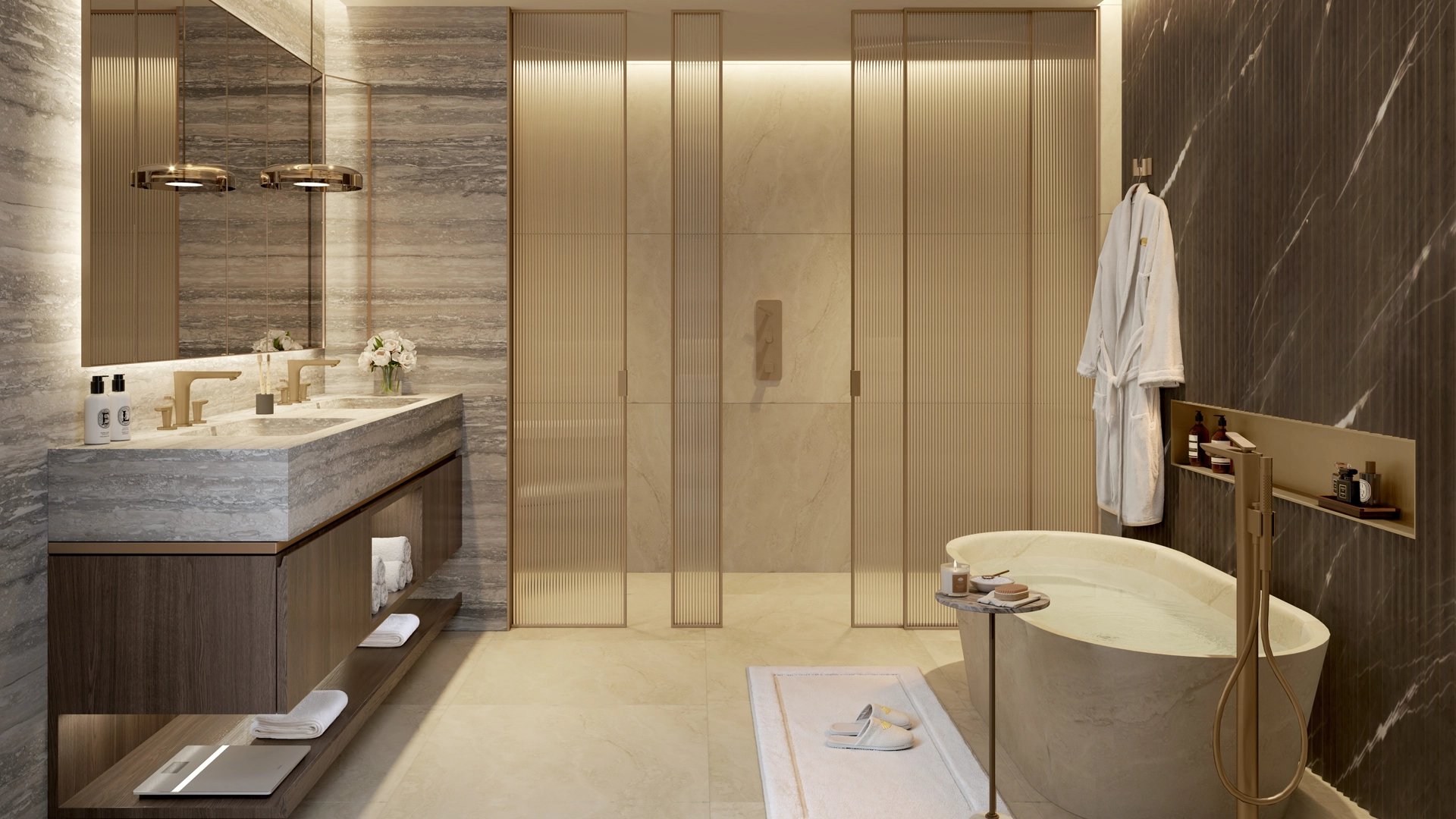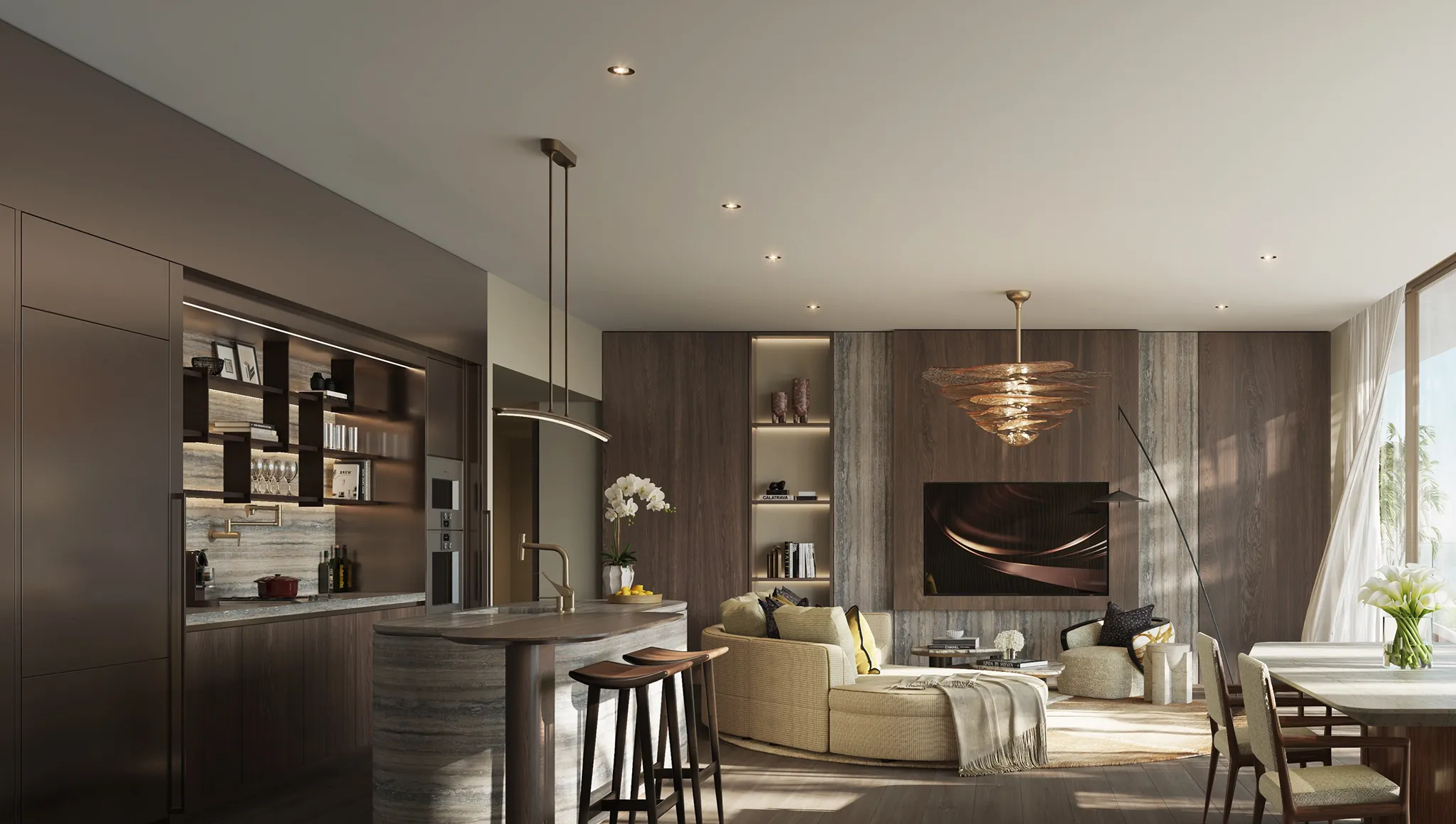 Jede Einheit wurde mit höchster Präzision von der renommierten New Yorker Designerin Lillian Wu gestaltet. Natürliche Materialien, warme Holzelemente und elegante Metallakzente schaffen eine luxuriöse und dennoch einladende Atmosphäre.