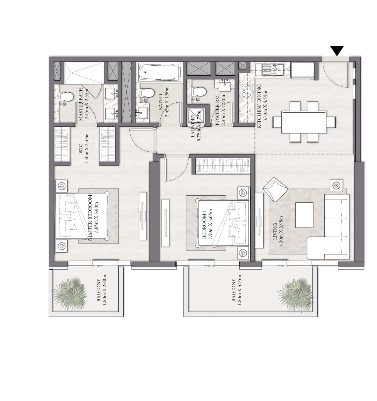 Auf der Emaar Beachfront im Gebäude Beach Mansion liegt diese wunderschöne 3 Zimmer  Neubauwohnung mit zeitnaher Fertigstellung 12.2025. Die Wohnung wir direkt vom deutschen Eigentümer aus privaten Gründen verkauft, der Paymentplan vom Bauträger wird übernommen und weitergeführt.