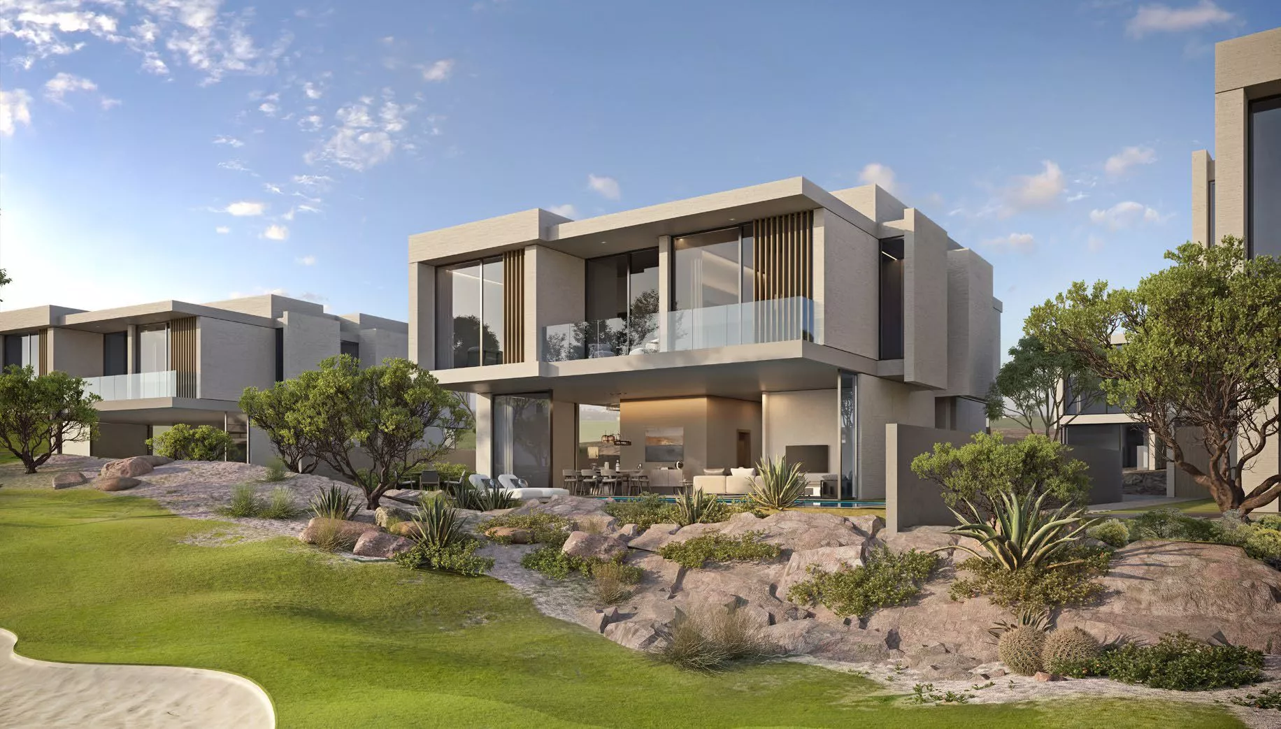 Neben den Townhäusern Shamsa und den Stand-alone Villas MAHA, können Sie hier auch großzügige Doppelhaushälften „YASMINA“ erwerben.