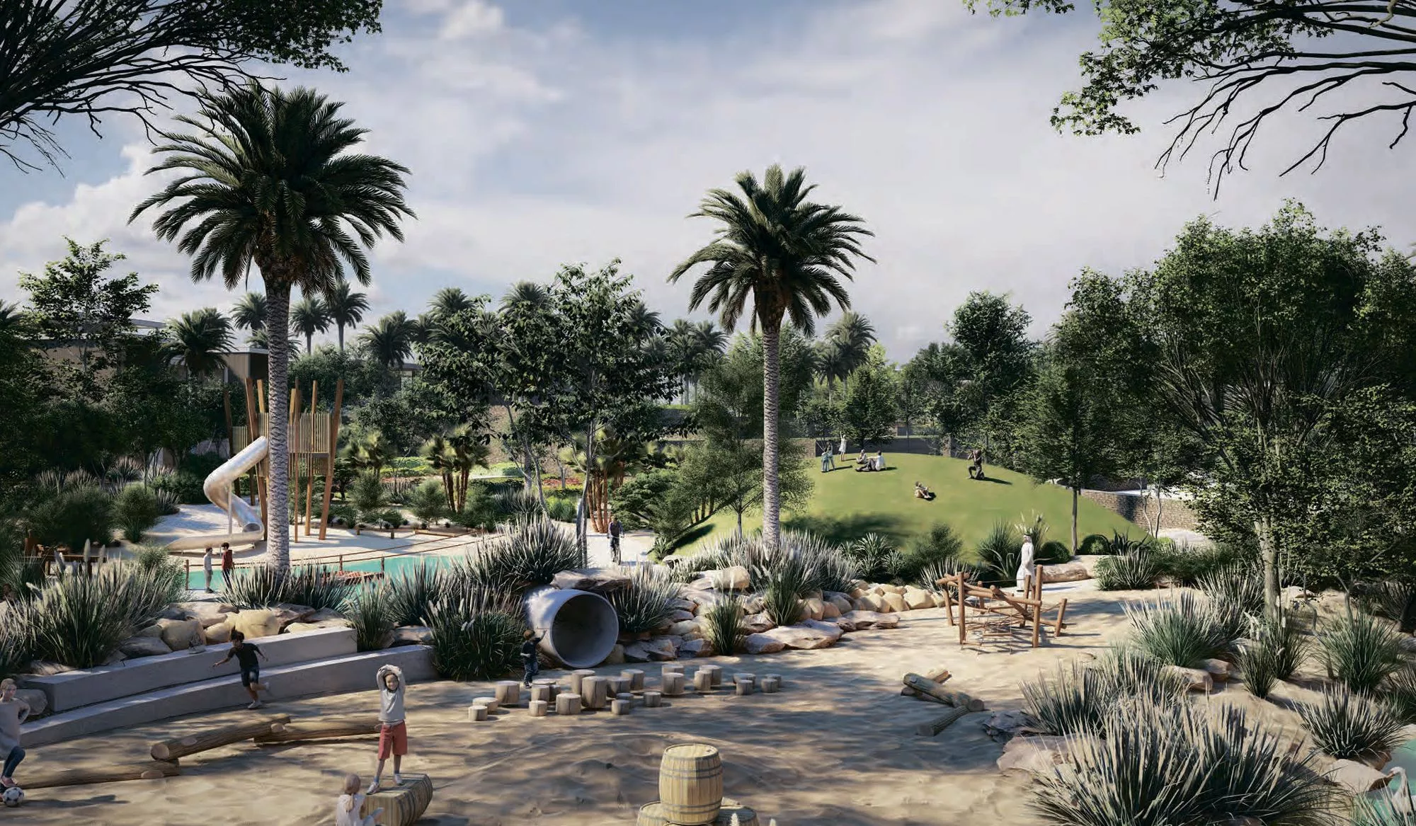 Alle Annehmlichkeiten, die Sie brauchen, sind nur einen kurzen Spaziergang entfernt und Sie leben in einem neu angelegten nachhaltigen Rerservat mit tropischer Flora und Fauna, eigener Wüste mit Tieren und Fluß der sich durch die das gesamte Areal zieht.