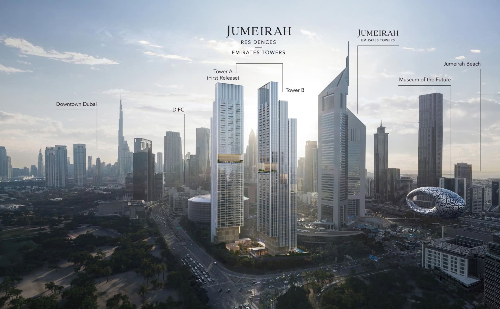 Willkommen bei einem der prestigeträchtigsten Wohnprojekte Dubais: den Jumeirah Residences Emirates Towers. Direkt neben dem weltberühmten Museum of the Future und den ikonischen Emirates Towers im DIFC (Dubai International Financial Centre) gelegen, entstehen hier luxuriöse Wohnungen von One-Bedroom bis hin zu exklusiven Four-Bedroom-Residenzen mit privater Terrasse und Pool – mit atemberaubendem Blick auf Downtown Dubai, die Skyline und das Meer. Ergänzt wird das Wohnerlebnis durch die renommierten Jumeirah Signature Services.